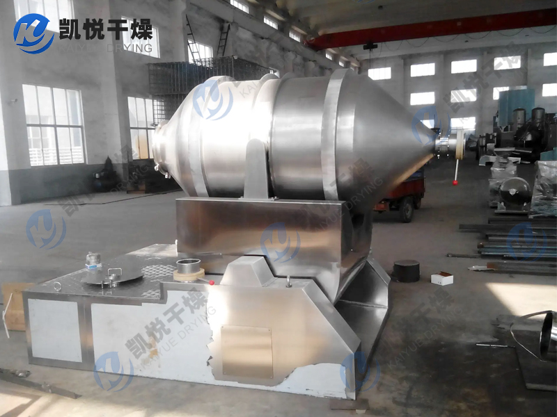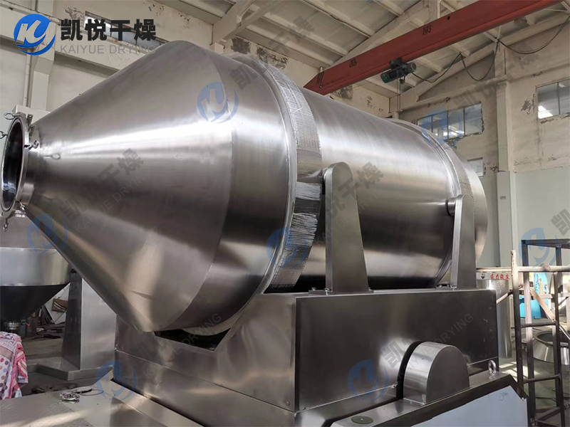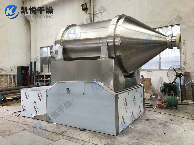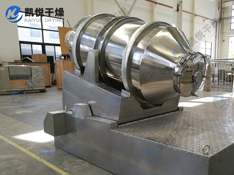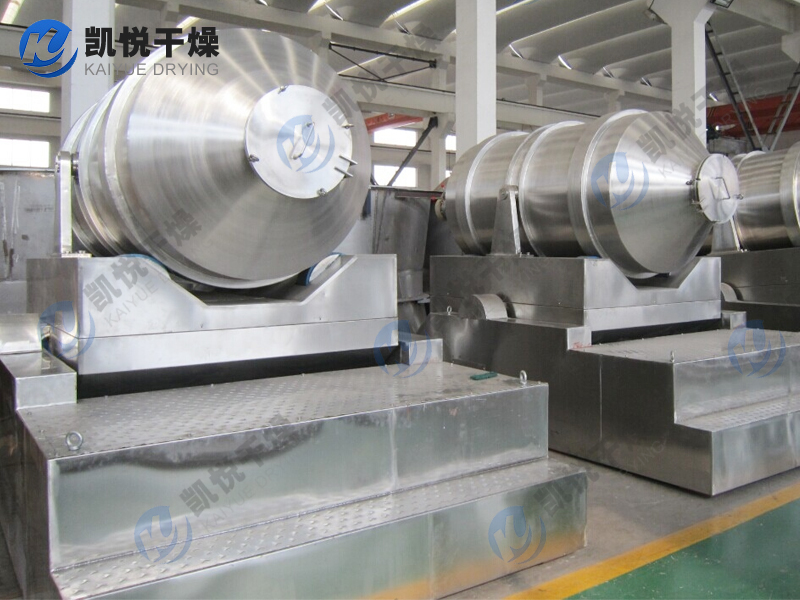 EYH系列二维运动混合机的转筒可同时进行二个运动,一个为转筒的转动,另一个为转筒随摆动架的摆动。被混合物料在转筒内随转筒转动、翻转、混合的同时,又随转筒的摆动而发生左右来回的掺混运动,在这两个运动的共同作用下,物料在短时间内得到充分的混合。EYH二维混料机适合所有粉、粒状物料的混合。