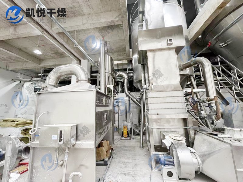 空气经空气过滤器后进入空气加热器,当空气加热器到给定的温度后以切线方向进入热风分配器,经热风分配器作用后的空气,均匀地、螺旋式地进入干燥室,同时料液由雾化器雾化为20~60um的雾滴,当雾滴与热空气接触后就迅速汽化干燥为粉末或颗粒产品。采用旋风风离器直接收集后经气力输送至效料仓,完成物料的冷却及输送,废气由风机排出口经水沫除尘器排出。