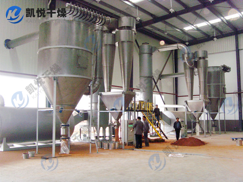 气固混合阶段:经过粉碎后,物料在闪蒸干燥主塔内与加热介质充分的接触。其中,气固混合的好坏决定整个干燥速率的大小。为了提高气流速度,在闪蒸干燥机的底部设置倒锥结构装置。