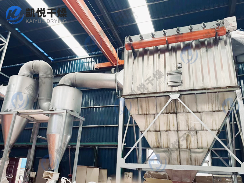 粒度分级:在干燥主机的上部设置环形挡板,此被称为闪蒸干燥机分级器。当物料运动经过该分级器时变会受到离心力的作用,呈现不同旋转半径螺旋上升的趋势。粒径较小的物料从分级器的内孔排出;颗粒较大的物料被留在干燥室内继续粉碎,待达到标准粒度从内孔排出。